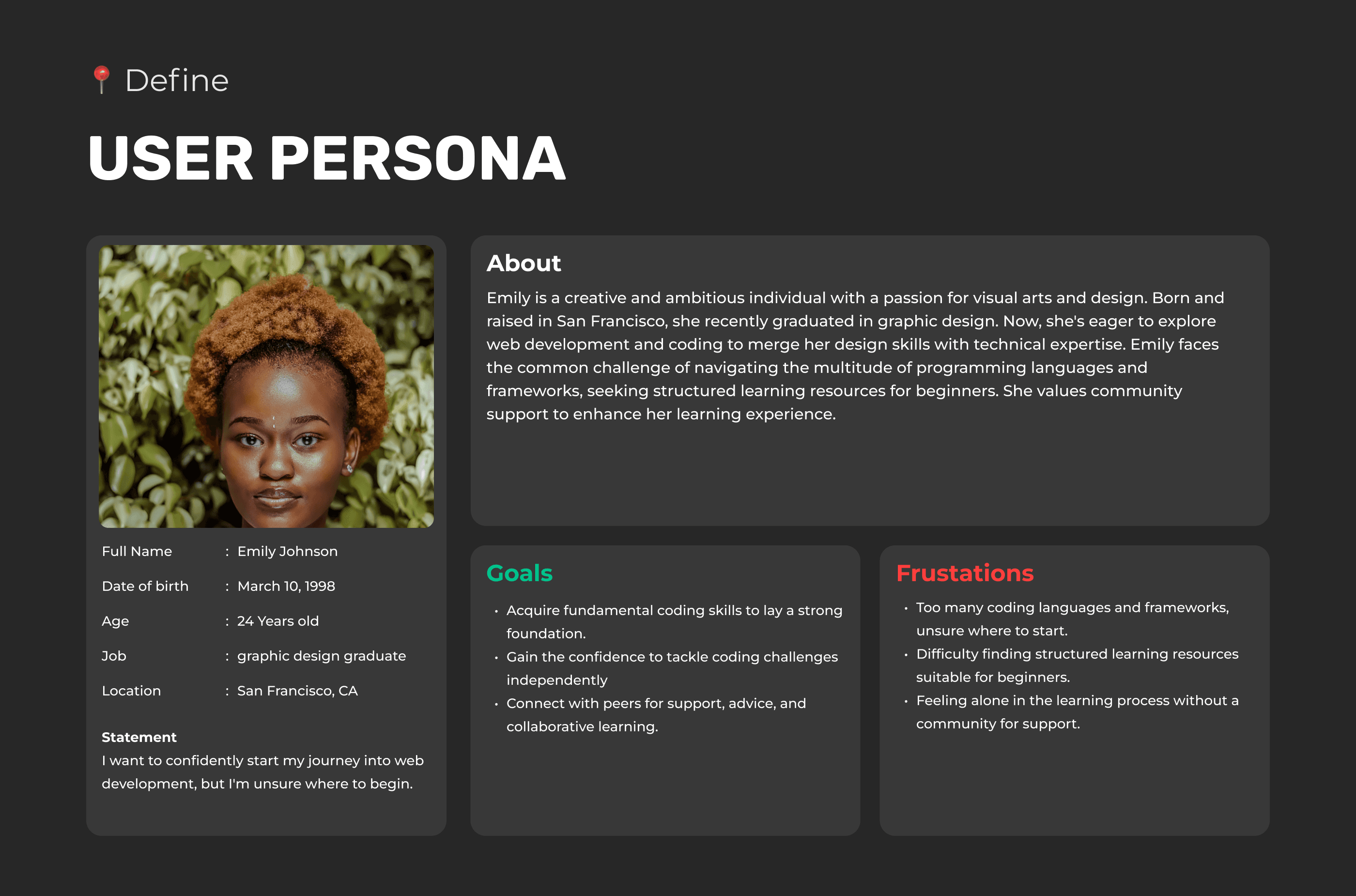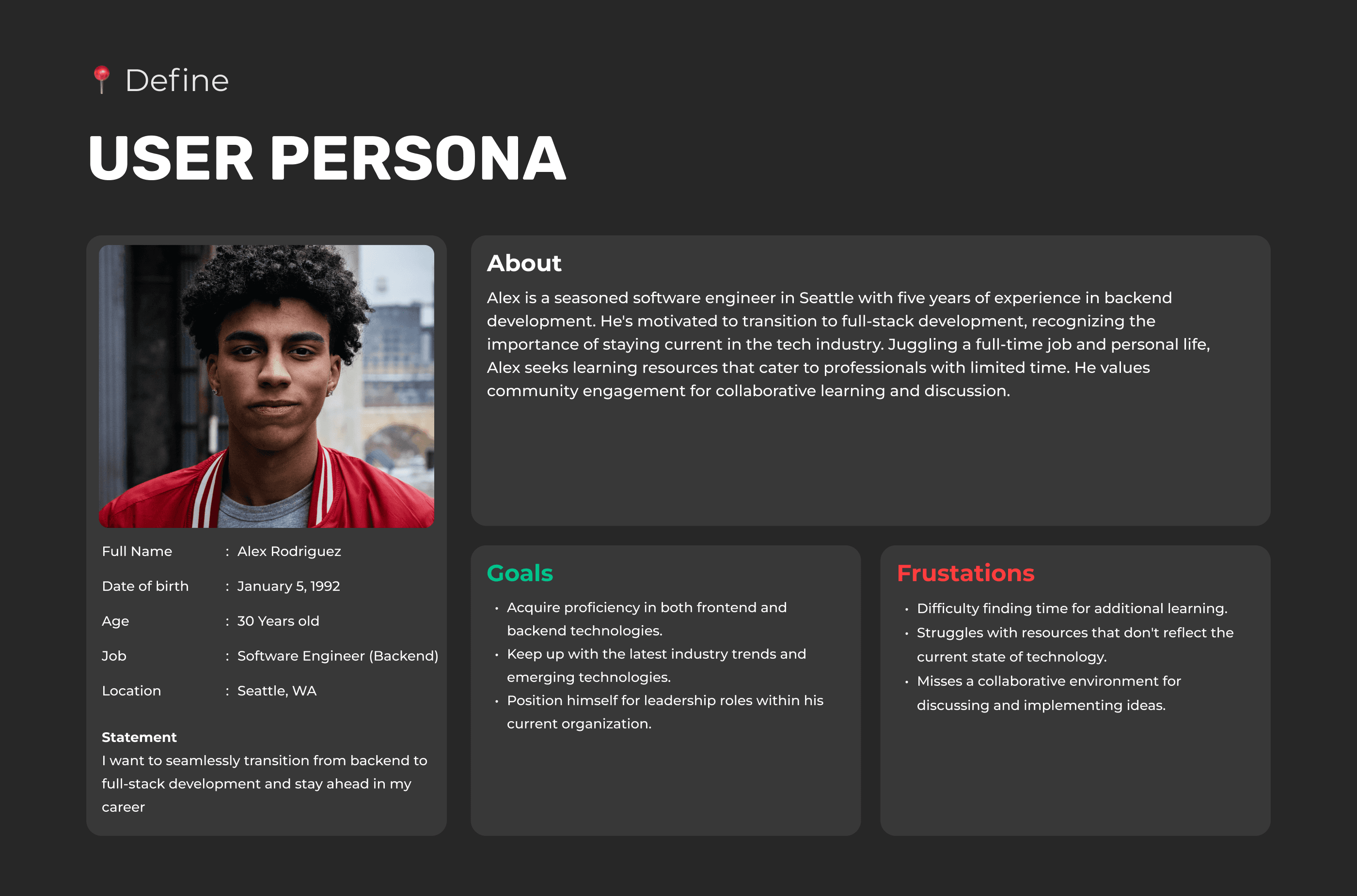 Understanding our users' needs, motivations, and challenges is crucial to delivering an effective and personalized learning experience. The following personas represent key segments of our user base, helping us to design and refine our platform to meet their unique requirements.