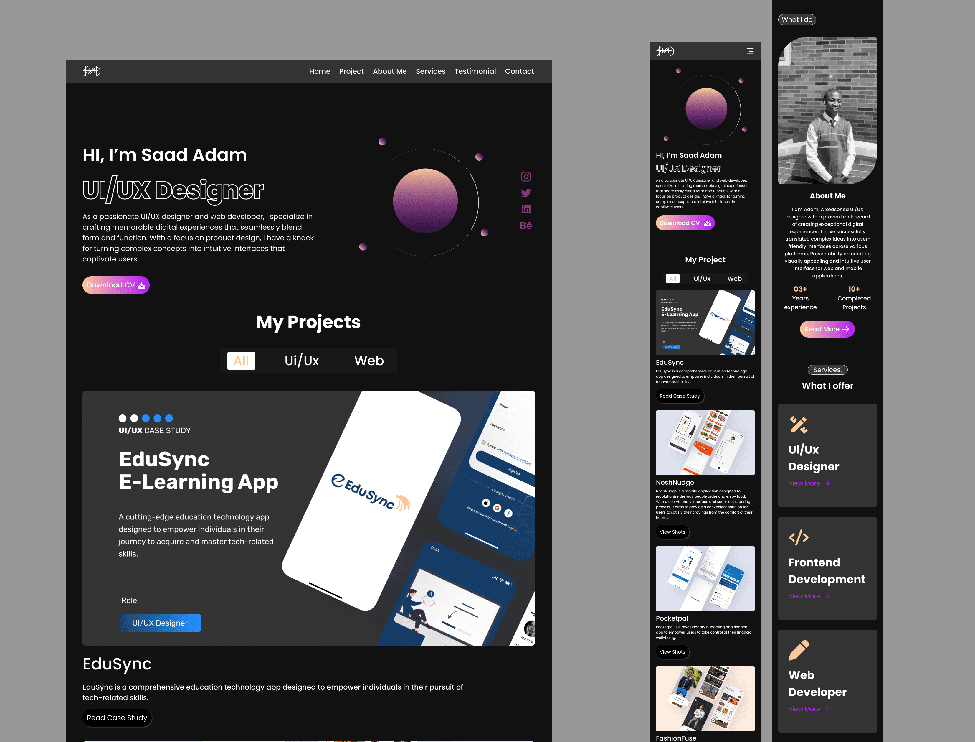 Project Focus: Each project is presented with meticulous attention to detail, allowing users to delve into your work without the need for unnecessary clicks or overwhelming details. Streamlined project pages provide a clear narrative for each piece in your portfolio.